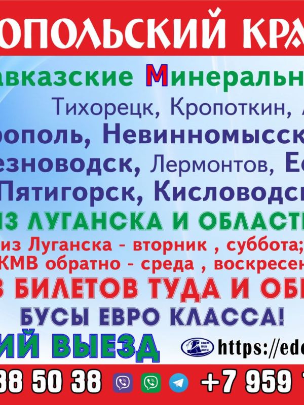 пассажирские перевозки в ЛНР (Луганск, Алчевск, Перевальск, Стаханов.Брянка), Армавир , Кропоткин, Тихорецк , Кущевская, Невинномысск